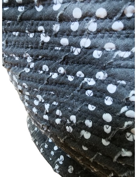 Nous formons une économie circulaire en travaillant des tissus, toiles ou autres matériaux récupérés ou donnés auprès d'entreprises ou de particuliers via l'Association Emmanuelle. Le but étant de leur donner une seconde vie et de les transformer en produits de mode, décoration, bijoux...