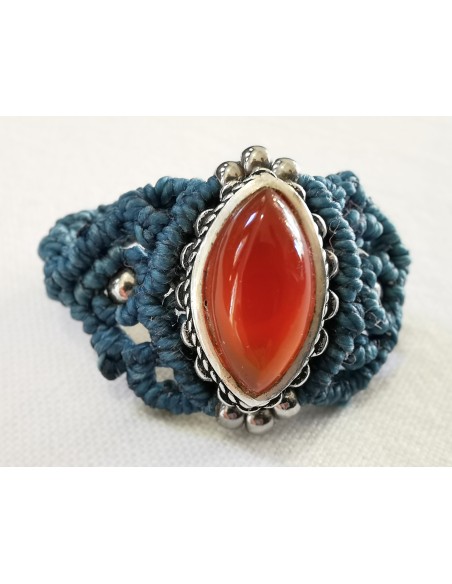 Couleurs : bleu foncé, perles grises, pierre orange.