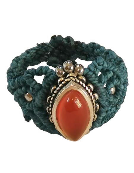 Bijoux fantaisie avec fils ciré micro-macramé, pierre semi précieuse et perles grise.