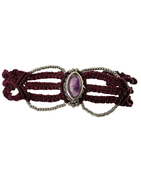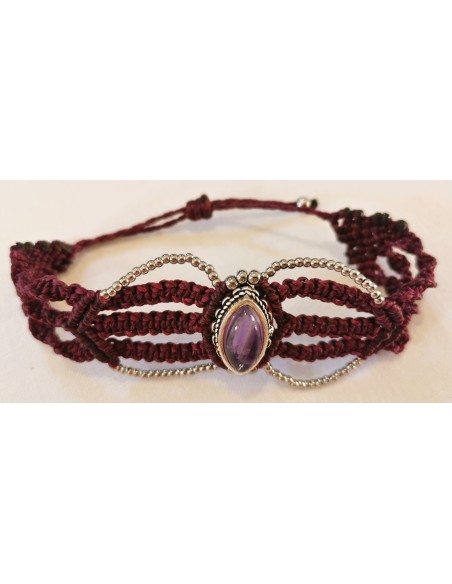 Bijoux fantaisie avec fils ciré micro-macramé, pierre semi précieuse et perles grise.