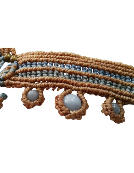 Bijoux fantaisie avec fils ciré micro-macramé, pierre de lune et perles.