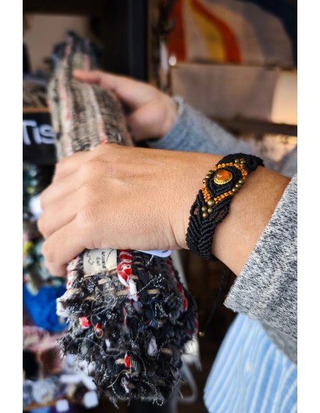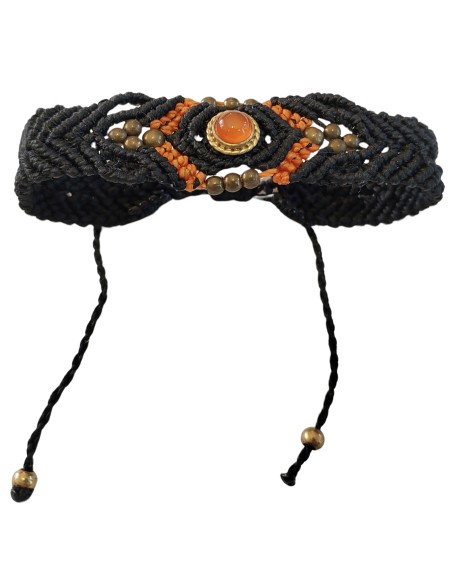 Couleurs : noir et orange, perles couleur bronze, pierre orange.