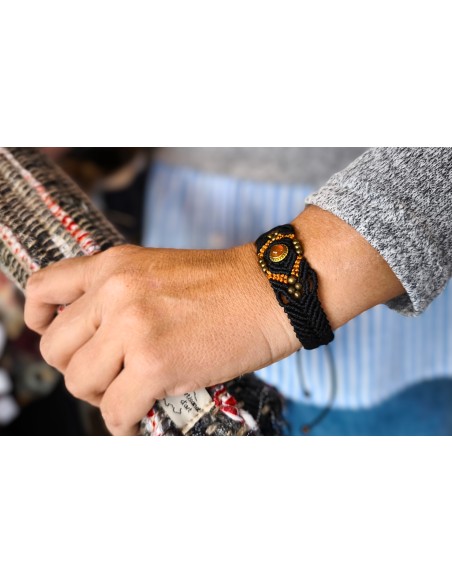 Bracelet macramé avec perles et pierre semi-précieuse.