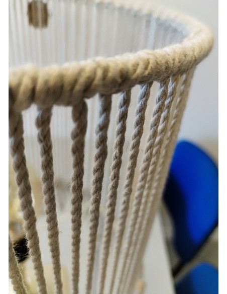 Lampe fait-main en béton et macramé.
