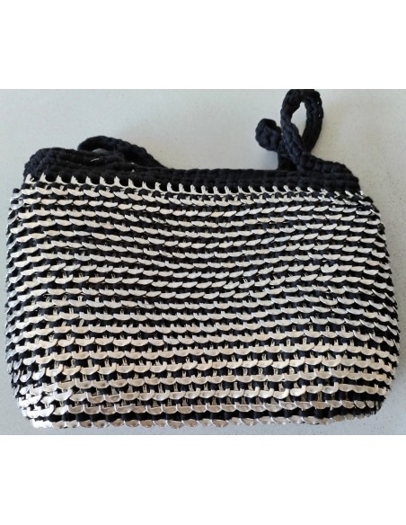 Sac réalisé avec des décapsuleurs de canettes et de la corde de macramé.