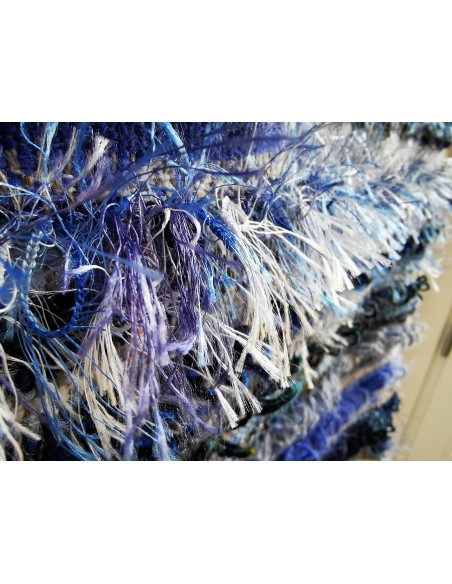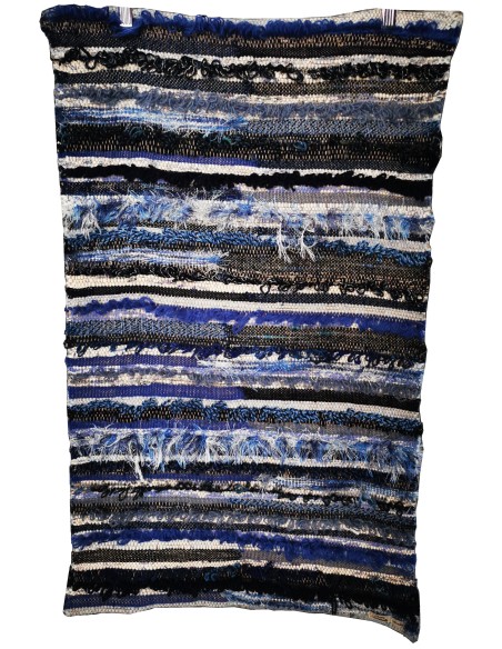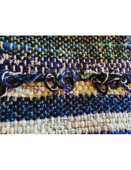 Tapis à boucles mélangeant du tissu de la laine, donnant des boucles et des franges.